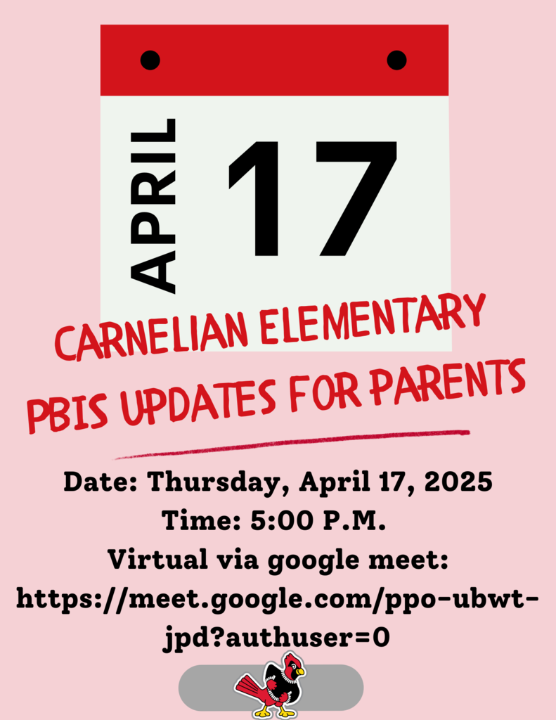 Did you miss Coffee with the Principal last week? Don't worry! Mrs. Williams sent an email with the presentation and handouts to all Carnelian families. This month's topic was PBIS and Bully Prevention lessons and reporting procedures. October is Bully Prevention Month and our students will be learning the definition of bullying and what they can do to respond and help prevent it. Our school counselor, Ms. Moreno also helped create a student video so that we can hear from our Cardinal students on the topic of bullying. There is also a Family Newsletter on Bully Prevention so that the discussion can continue at home as well.